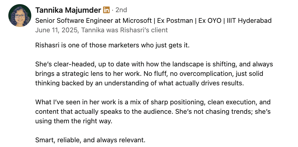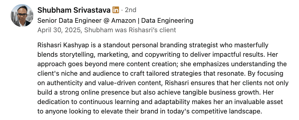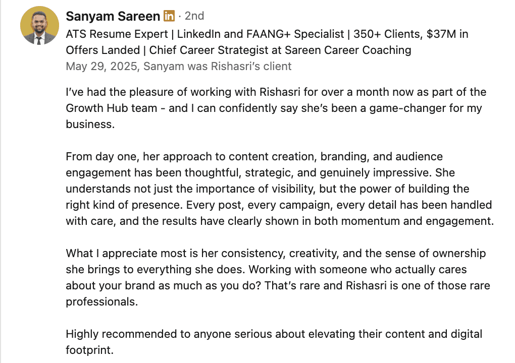 Since then, I’ve worked with 25+ clients, helped them grow their LinkedIn presence, and turned their profiles into lead-generation machines without spending on ads.